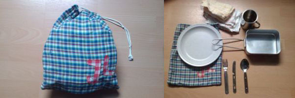 Los geht es wie gesagt meistens schon damit, dass der Beutel einfach komplett vergessen wird. Dann leihen sich die Kinder entweder alles zusammen und bearbeiten ein Stück Fleisch in einer Schüssel mit einem kleinen Löffel, weil das richtige Besteck natürlich grad verwendet wird, was meist sehr lustig mitanzusehen ist! Wird der Beutel nicht vergessen, ist es oft der Fall, dass Kinder die unmöglichsten Ausführungen der oben genannten Inhalte mit ins Lager bringen. (Un)gern gesehen sind hierbei: Ikea Plastiknäpfe, Porzellanteller, seltsame Konstruktionen, bei denen Messer, Löffel und Gabel zusammenhängend ein „Teil“ darstellen, jegliches Besteck in Miniaturform oder auch Schalen so groß, dass der ganze Tisch daraus essen könnte.